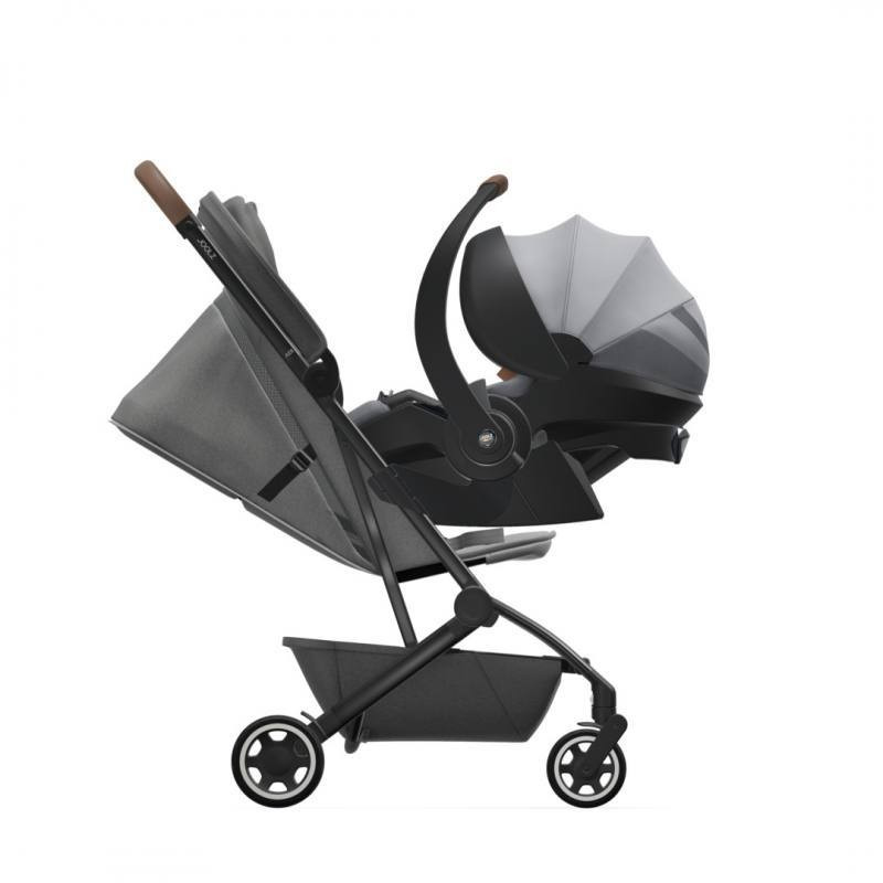 Tan fácil como acoplar los adpatadores al chasis de tu Joolz AER sin tener que retirar la tela de la silla de paseo y acoplar el asiento de coche para bebés Grupo 0.