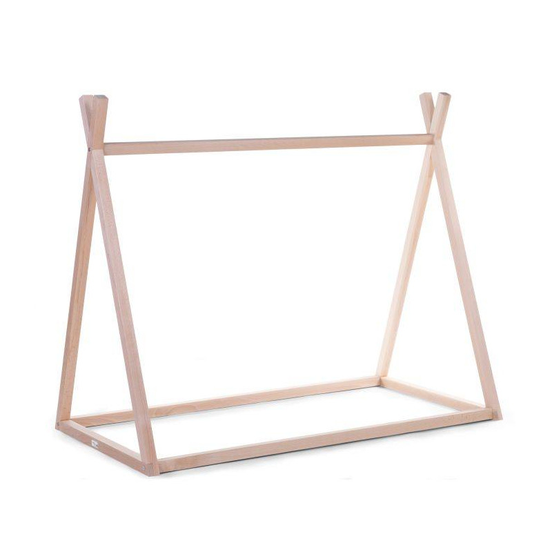 Esta genial cama tipi completa una moderna habitación junior. Decora el elegante marco en forma de A con luces, guirnaldas u otros accesorios divertidos para que el dormitorio de tu hijo sea aún más personal. También puedes transformar la cama tipi en una auténtica tienda de campaña gracias a la funda opcional que está disponible. De esta forma, su pequeño aventurero descansará seguro en su propia tienda de safari. Todo el marco de la cama está hecho de madera maciza. Una base de listones adecuada está disponible opcionalmente. El armazón de la cama se coloca directamente en el suelo y no se puede colocar sobre una cama junior o una cama para niños pequeños. Nota: la madera utilizada no fue tratada.