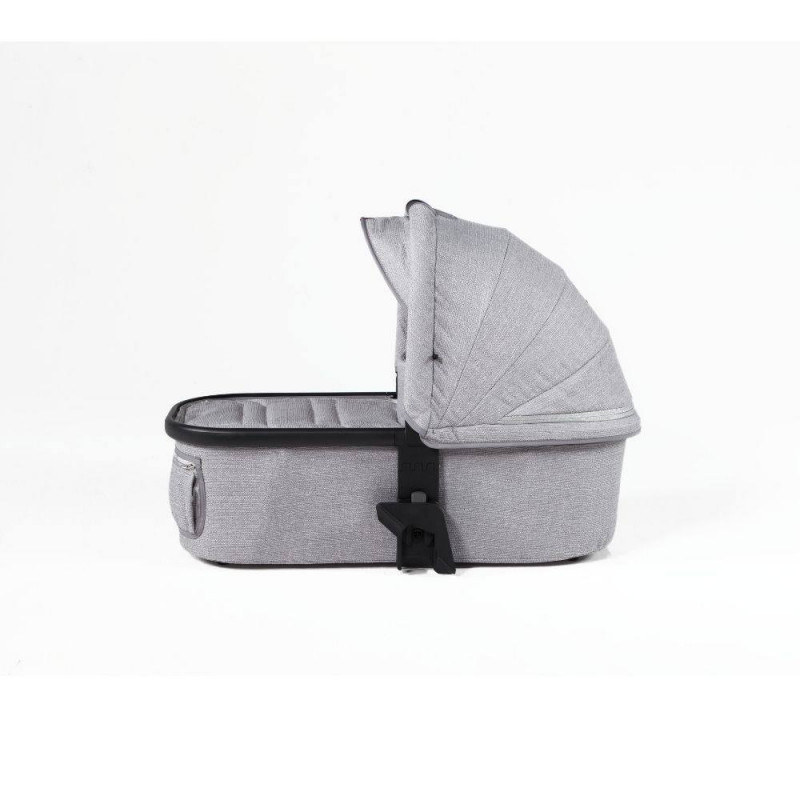 El capazo es adecuado para el carro MAST M.4x. Gracias a los dos botones de los adaptadores, puedes quitar fácilmente el capazo del marco del cochecito con una sola mano.