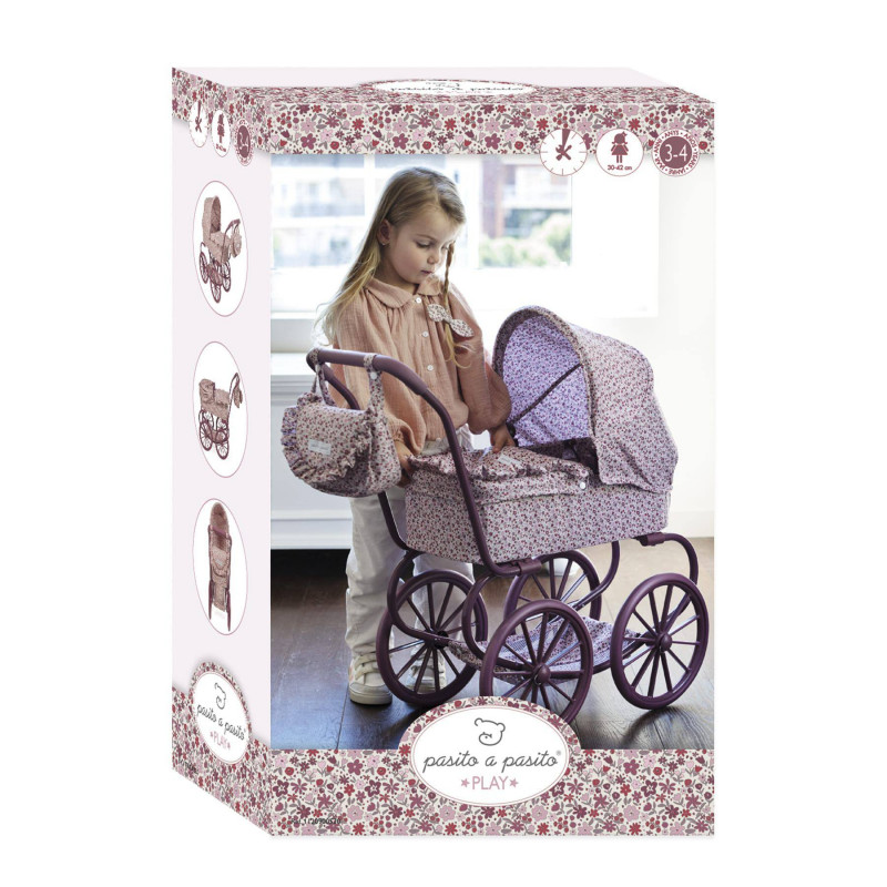 Sumérgete en la elegancia y la tradición con el magnífico cochecito clásico de muñecas de las exclusivas colecciiones Cherry y Nara de Pasito a Pasito.
