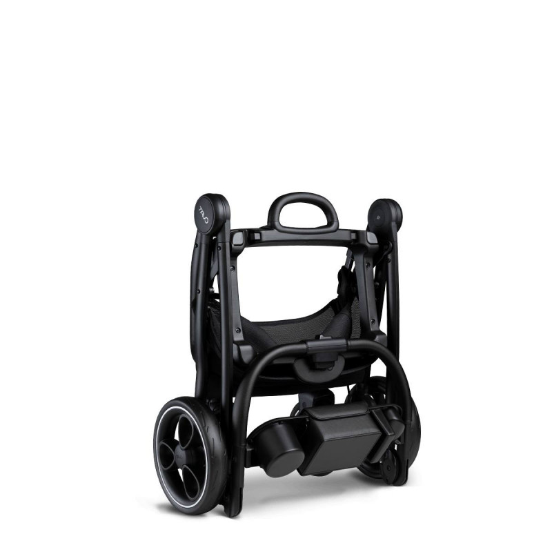 • Con solo tocar un botón en el manillar, la estructura se pliega fácilmente y queda compacta.
