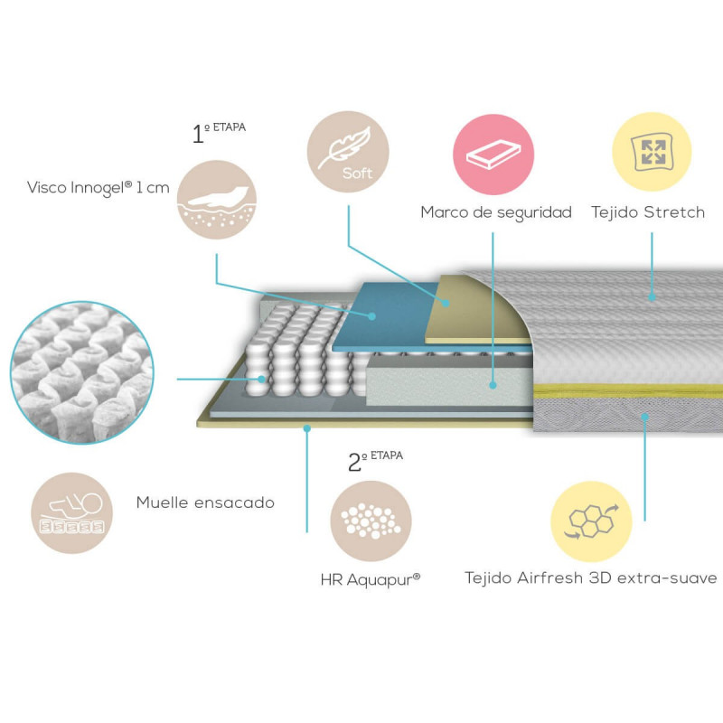 El colchón dispone de una garantía de 5 años desde la fecha de compra ante problemas o defectos de fabricación.