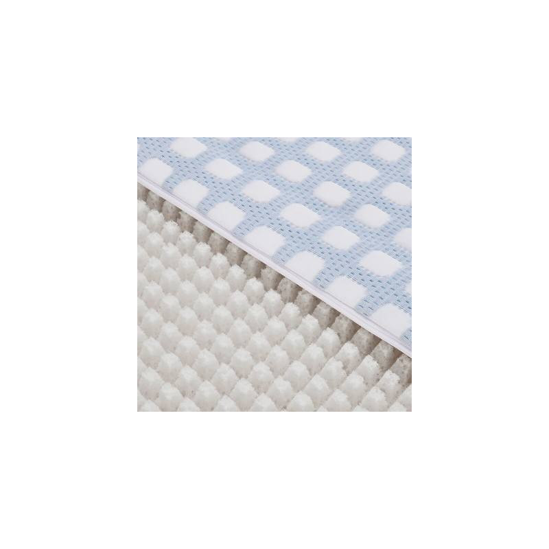 Su topper presenta un diseño en forma de pequeñas pirámides que generan numerosos puntos de apoyo, ayudando a reducir la presión en la cabeza del bebé hasta un 70%, eliminando el riesgo de sufrir plagiocefalia (cabeza plana) o ayudando a corregirla en caso de que haya sido diagnosticada.