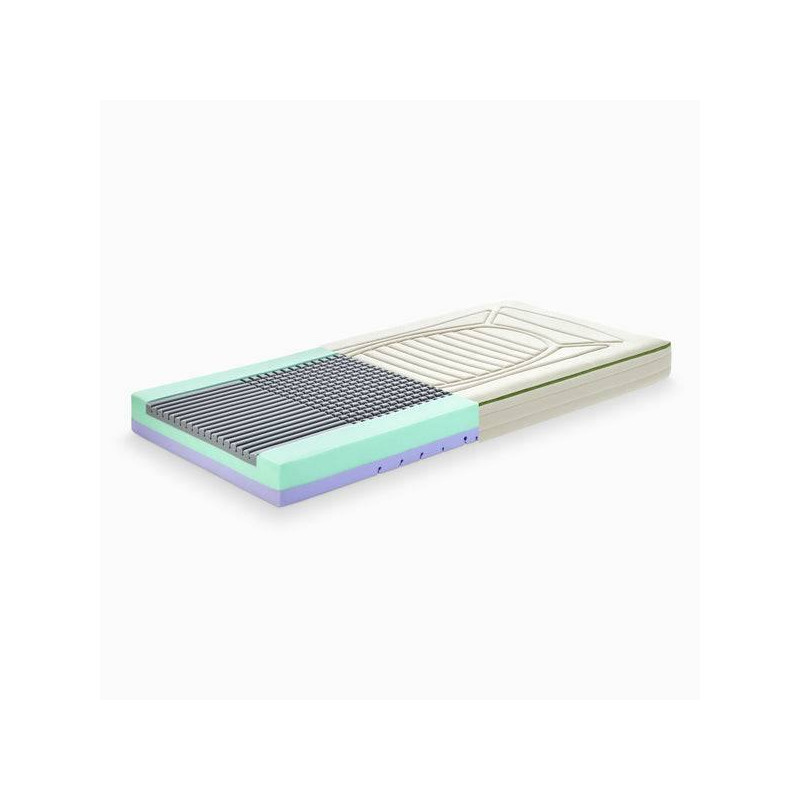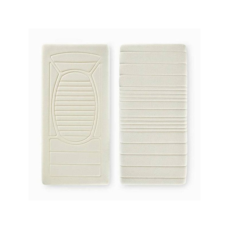 El colchón Dubi Nature tiene un núcleo de espuma Oxígena de alta densidad. El perfilado de la espuma es diferente por una cara y otra del colchón, permitiendo que sea un colchón de doble cara según la etapa de crecimiento del niño.