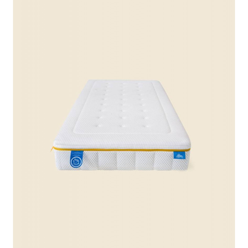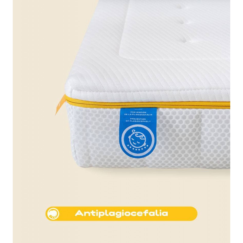 Carcasa de muelles ensacados combinado con espuma HR perfilada para asegurar un correcto crecimiento, comodidad y desarrollo óseo adecuado.