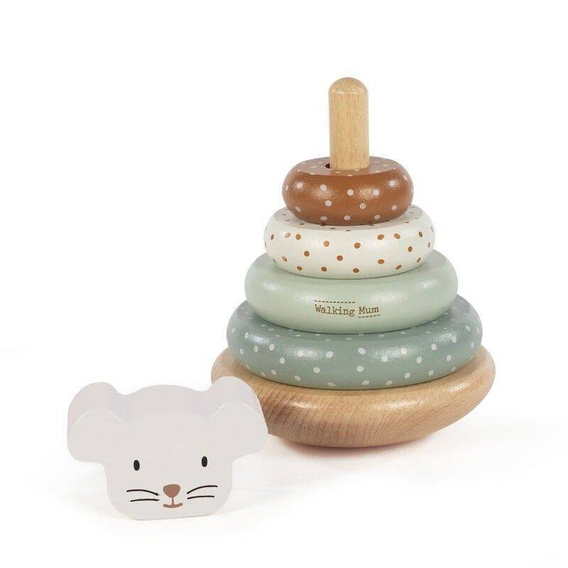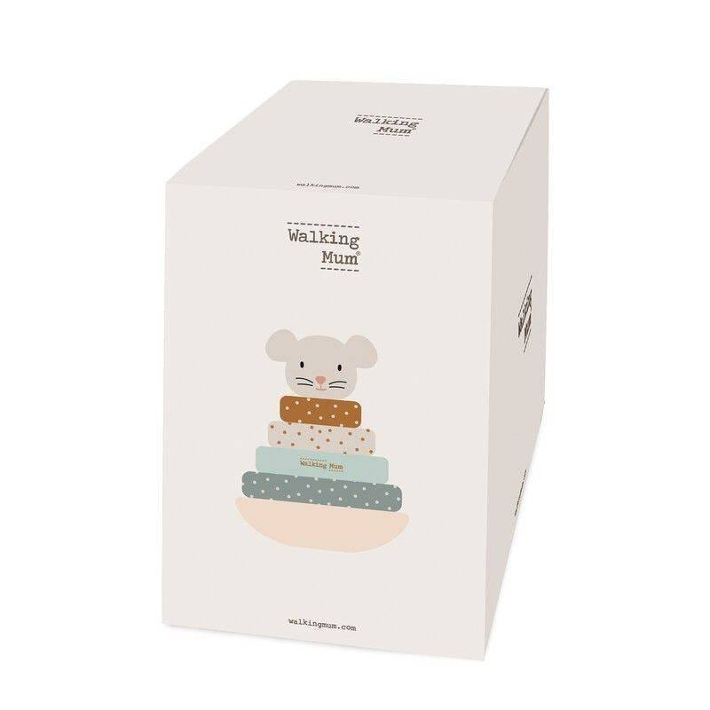 Con un adorable diseño de ratón en la parte superior, este juguete no solo es educativo, sino también estéticamente agradable, convirtiéndolo en una pieza decorativa ideal para cualquier habitación infantil. La torre está coronada por una simpática cabeza de ratón, que agrega un toque divertido y amigable para los niños. Los colores suaves y patrones de puntos aseguran que el juguete sea visualmente estimulante.