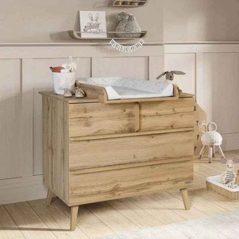 La cómoda Martha de Micuna presenta un diseño de estilo natural fabricada con maderas procedentes de bosques sostenibles. En ella podrás guardar la ropita y todo lo que necesites para tu bebé.