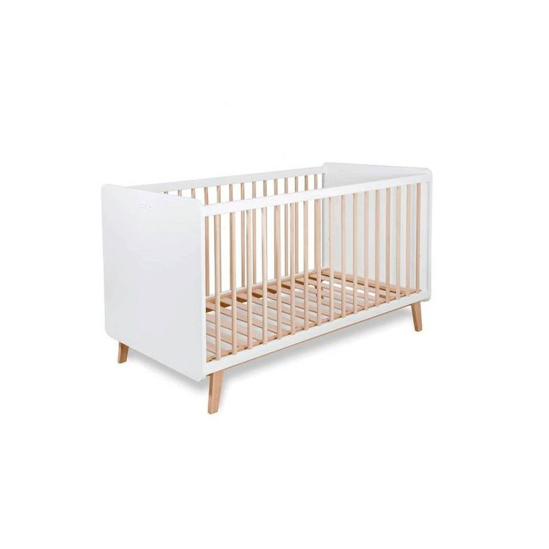 La cuna Big Trevi de 140x70 está realizada con haya acabada en cera natural y MDF lacado en color blanco. Esta cuna camita incorpora un somier con dos alturas disponibles 21,5 cm y 44 cm. Además, se convierte en camita para adaptarse al crecimiento de tu bebé.
